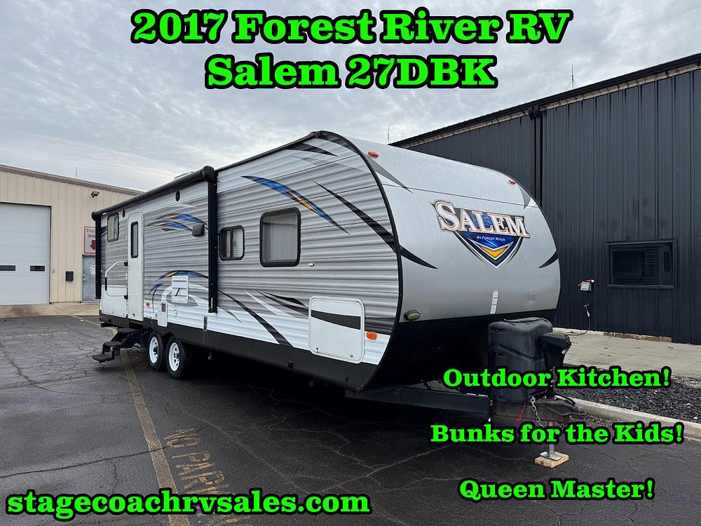 Set out to new destinations, and make plenty of memories camping in the single slide out Salem 27DBK travel trailer by Forest River. This model also features a rear set of bunk beds and an outdoor kitchen.