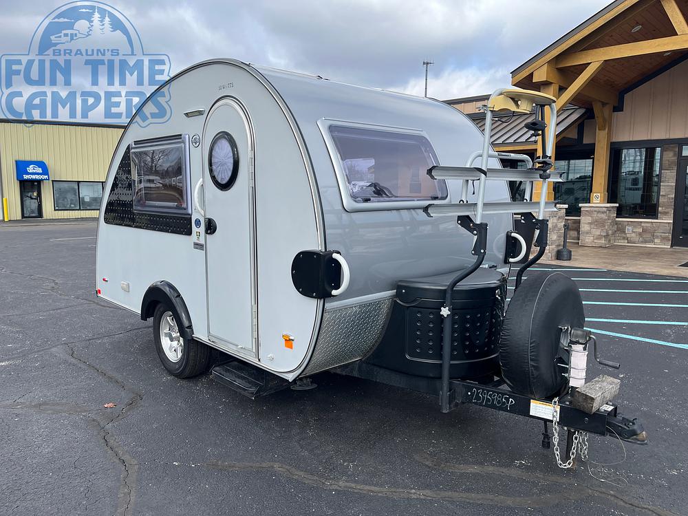SLEEPS 2, A/C, ALDE RADIANT HEATER, 2 BURNER STOVETOP, ELECTRIC FRIDGE, SINK, ELECTRIC WATER PUMP, BLUETOOTH STEREO, 2 TV'S, 12V ROOF VENT FAN, CASSETTE POTTY, 4 STABILIZING JACKS, ALUMINUM WHEELS, GOODYEAR TIRES, SPARE TIRE, OUTSIDE SHOWER, BIKE RACK