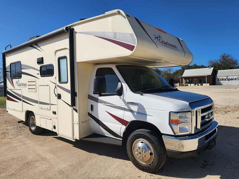 Check out this great little 21 QB and make it yours. For its 24 ft length it has amazing amenities and an unbelievable amount of storage. It's a simple setup with no slides to mess with or worry about! This 21 QB is a fully self-contained rig that is easy to drive and park and averages 12 miles per gallon when not towing. The Freelander comfortably sleeps six with a queen bed in the rear, a cabover bunk with built-in safety netting, and a dining table that converts to a bed. A rear corner dry bath has a sliding glass door on the shower and a corner medicine cabinet. There is a nice sized closet for hanging clothes, two drawers beneath and tons of cabinet space over the queen bed. There is also generous storage space under the c-shaped sofa for things you don't need immediate access to. A TV swings out from the cab over area and a CD player rests in a built-in compartment next to the TV. The bedroom area is pre-wired for TV with backer. The galley has a three burner stove, oven, microwave, sink, flip up counter, and plenty of cabinet space over the dinette for all your cooking needs. Outside, a 15-ft power awning with an LED strip provides great ambiance. An outside TV with remote is tucked into a special carpet lined compartment just outside the main entry door. There is massive basement storage with access doors on the side as well as the rear for all of your camp gear, chairs, backpacks and luggage. The sewer hose conveniently stores in the rear bumper. This rig is powered by the strong reliable Ford E350. She has six new Goodyear tires as of March 2025 with only 3,000 miles on them and a recent oil change. She also has an onboard Onan generator that was rebuilt in '25 and runs great. Like most of us she's got a few cosmetic blemishes but she's super clean and runs and works great! I've taken good care of her. I decided to settle down close to family and am no longer traveling.
