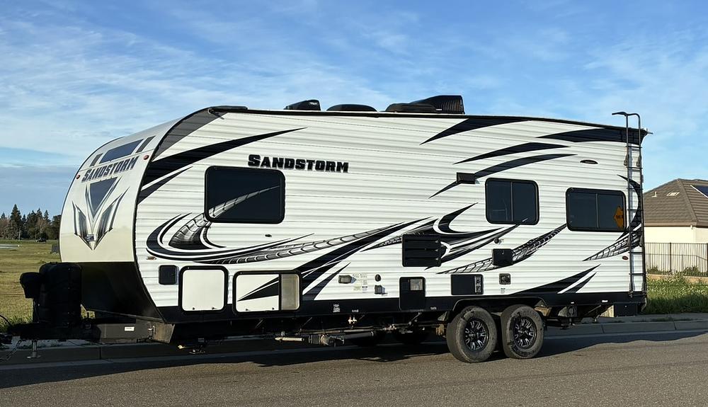 This is a 211SLC model, 28.6' long overall. It has been a great trailer for us, it has high ground clearance to get into the places you want to go to and the tankage to let you stay there a while. The 211SLC model has the artic package that includes the extra insulation and tank heating. We upgraded the solar to 570 watts, added a 1750 watt inverter, upgraded battery to 200ah LiFePo4 with Victron shunt and upgraded Lithium charger. There is an Onan generator onboard with a 35 gallon fuel tank.