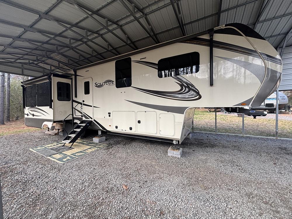 The Grand Design Solitude 378MBS-R is a luxurious fifth-wheel trailer that offers spacious living and top-of-the-line amenities for your next adventure. Built in 2021, this model is designed to provide comfort and convenience on the road. With a sleek and modern exterior, the Solitude is sure to turn heads wherever you go. After we purchased it in 2024, we brought it to our property and parked it under a solid metal roof where it has been located ever since. Only two trips down the road - pulled for less than 100 miles total. It passed a full professional RV inspection, and we have all receipts of over $3,000 worth of upgrades and repairs from 2024. The entire roof was completely resealed by a certified RV tech (every seal, every rubber boot). No leaks EVER!