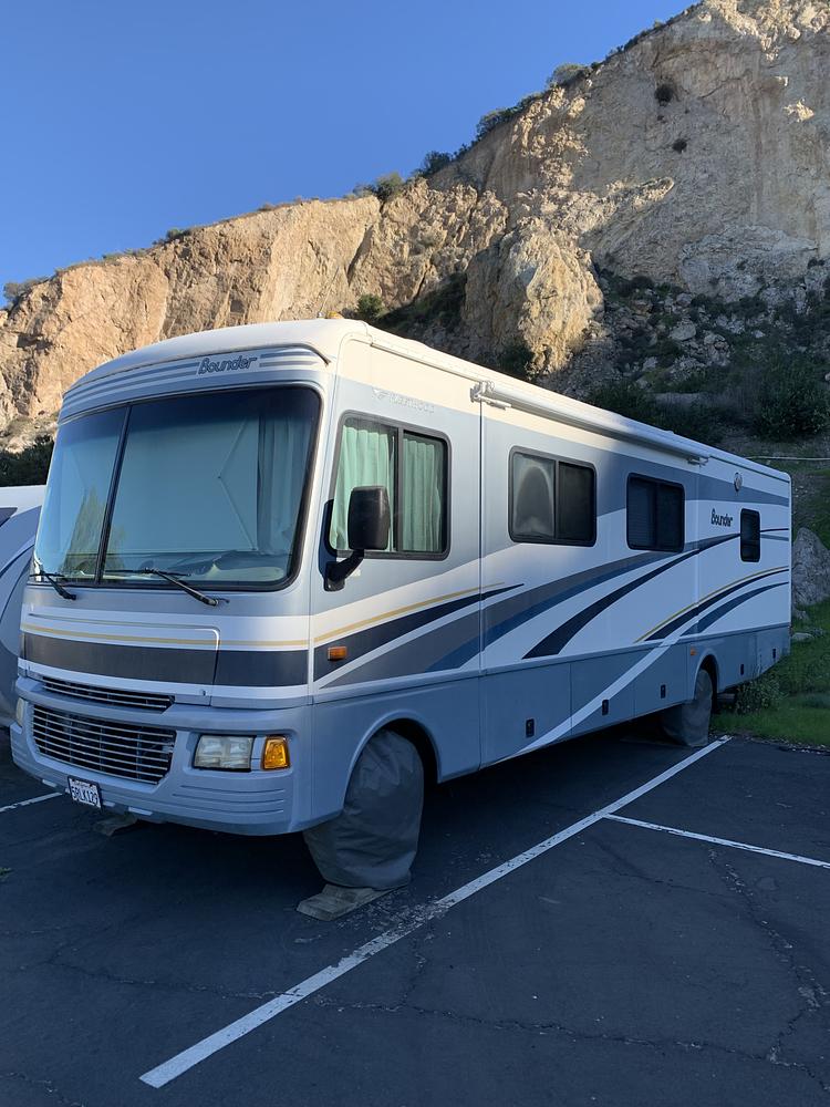 Outside, the Bounder is equipped with awnings, storage compartments, and a power generator for off-the-grid adventures. The sleek exterior design and bold Fleetwood branding make this RV stand out on the road. With its durable construction and dependable engine, you can trust that the Bounder will get you where you need to go with ease.