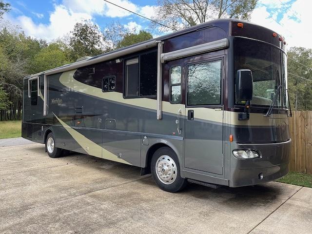 The 2005 Winnebago Itasca Meridian 36G is a luxurious Class A motorhome that offers both style and comfort for your travels. With only 43,919 miles on the odometer. 350hp Caterpillar diesel, 6 speed Allison,7.5 kw Onan generator. 2 slides, Corian countertops, 4 door refrigerator with an ice maker, convection microwave, stove, washer and dryer prep, Capacities: 90 gallon fuel tank that can be fueled from either side of the coach, 54 gallon grey/black tanks, 92 gallon fresh water tank, 39 gallon LP tank. sleeps up to 46 people. Basement A/C, electric patio and entry door awnings, manual awnings over bedroom windows, 50 amp service with a 2,000W inverter. Backup camera, air ride, air brakes, air horns, electric jacks for leveling system, 50 amp service with a 2,000W inverter. 10,000 lb trailer hitch capacity. Way more features and options to list. The entire roof and windows were resealed due to a leak from the skylight, $9000 repair.