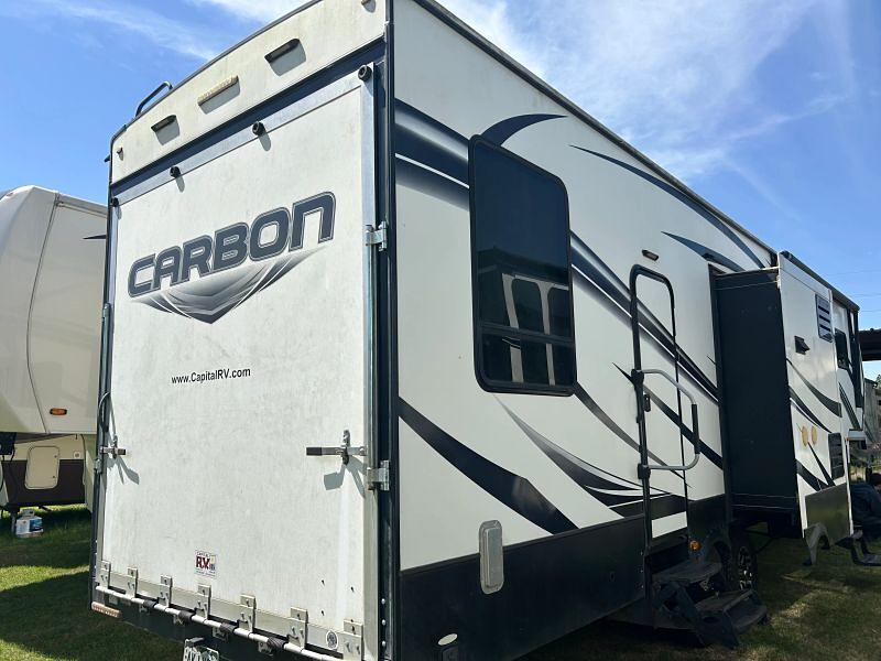 2014 Keystone RV Carbon Fifth Wheel Toy Hauler, The 2014 Keystone Carbon 327 is a luxury toy hauler travel trailer that combines the features of a recreational vehicle (RV) with the ability to haul your outdoor toys such as motorcycles, ATVs, or dirt bikes. This model is part of the Keystone Carbon series, known for its high-end amenities, spacious interiors, and rugged construction designed for adventurous families or outdoor enthusiasts.