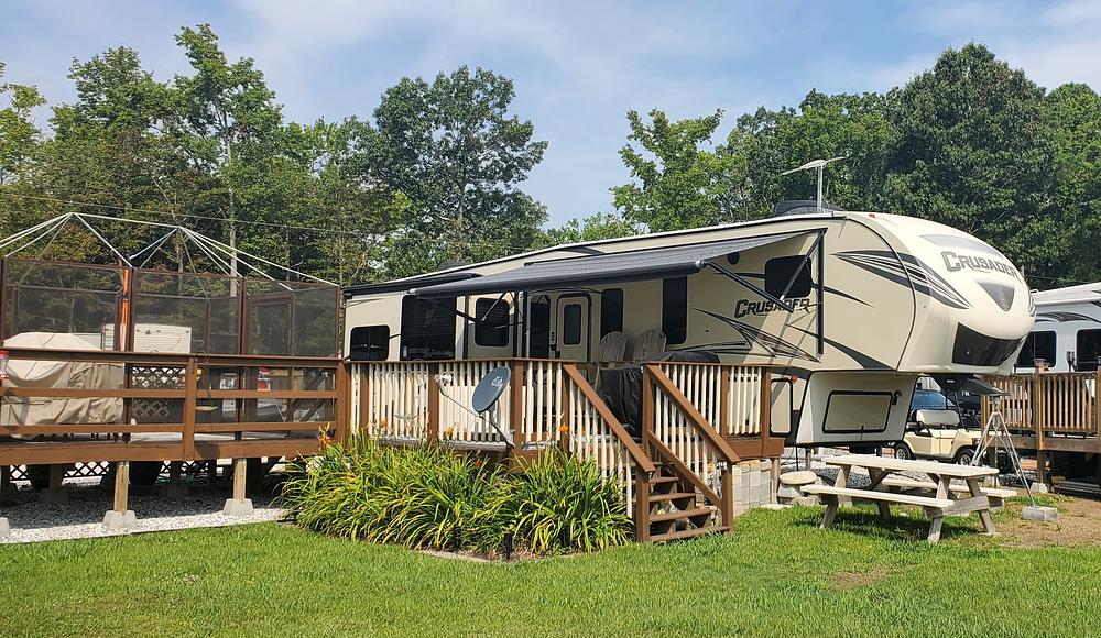 This unit is currently located at the Gwynn's Island Resort in Mathews, Virginia. The deposit of $750 for 2026 is paid for lot I-11.