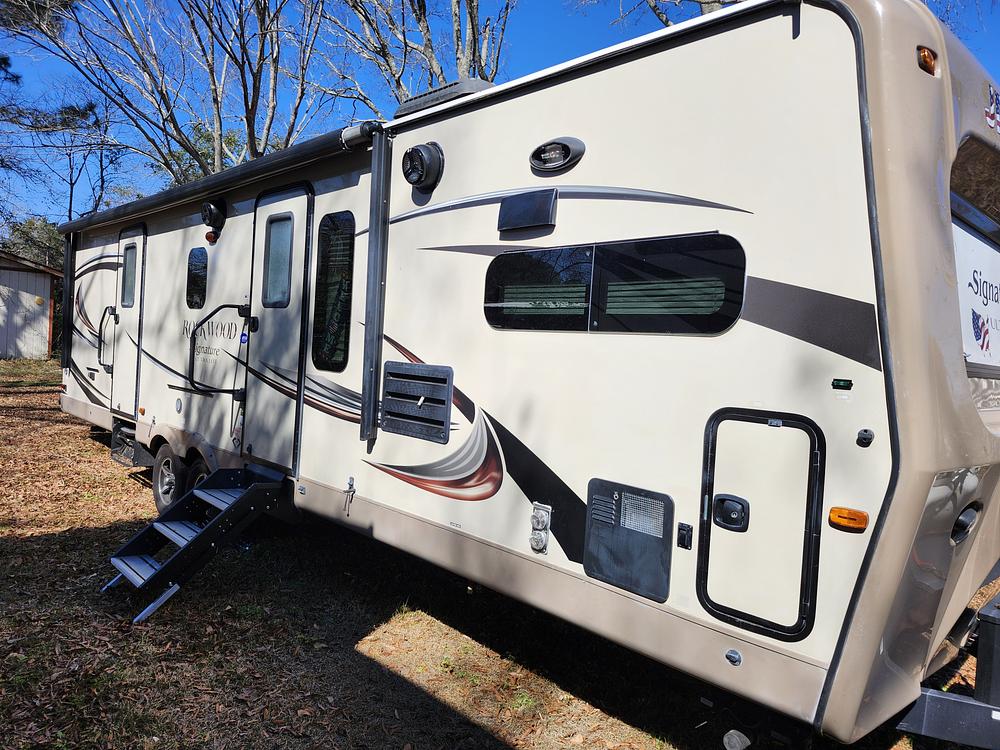 2016 Rockwood travel trailer, model 8315BSS. Two slideouts, two AC's, 50 amp service, large rear bedroom, front kitchen with very nice cabinets, lots of windows, full sofa with pull out bed, recliner, wood table with 2 chairs, new power tongue jack, and the Goodyear tires have less than 1000 miles on them. Everything works as its supposed to except for the furnace, which runs but doesn't get warm. The furnace was never a problem for us since we used a portable electric heater. Airconditioners work great! Comes with 25 foot 50 amp power cord, wheel covers, water hoses/filter, sewer lines/connectors, and spare tire. Weight distribution hitch is also available and might be included depending on the deal we make. This camper is in very good condition and there are no water leaks or water damage. We are the second owners and we have loved this camper, but we have now purchased a 5th wheel so this one is going to new owners. Asking $19,000 OBRO. Located about an hour north of Charleston, SC.