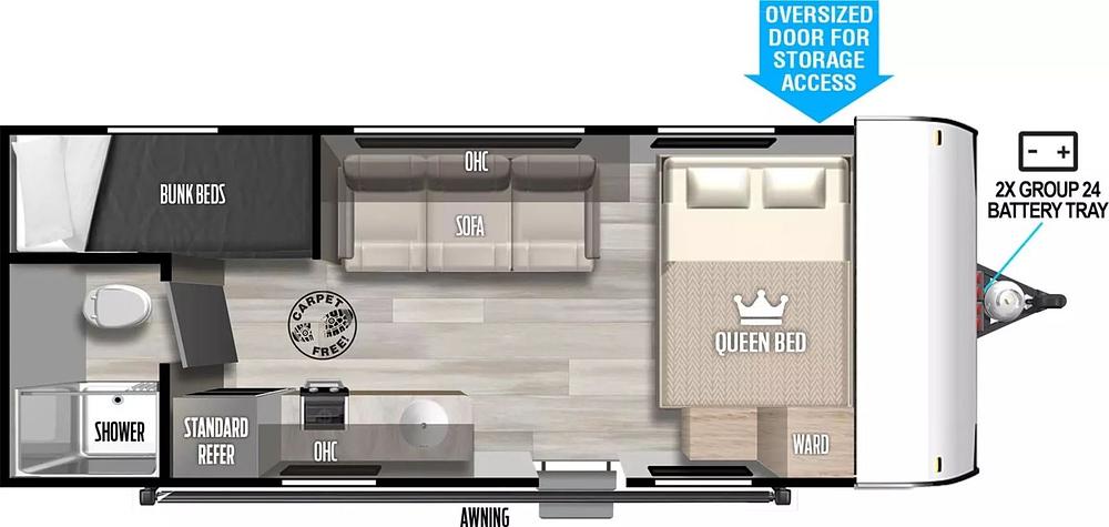 Forest River Salem FSX 174BHLE, Introducing the 2023 Forest River Salem FSX174BHLE a lightweight, familyfriendly travel trailer that blends comfort, convenience, and quality construction into a versatile package for both weekend getaways and longer adventures. Part of the Salem FSX lineup, this model is designed with thoughtful features and practical amenities that make camping enjoyable without sacrificing ease of towing or everyday usability. Built with a powdercoated Ibeam chassis, aerodynamic front profile, and smooth aluminum exterior , the 174BHLE is engineered to be durable, towable, and ready for life on the road. It also includes nitrogenfilled tires and 5/8 tongueandgroove plywood floor decking for added strength and longevity. Inside, the floorplan is designed to make the most of its 201 length , offering functional living space and sleeping arrangements that can accommodate up to 6 people with a front queen bed, a rear bunk area, and a convertible sofa . For climate control and comfort, the 174BHLE includes a roofmounted 13,500BTU air conditioner and a 20,000BTU furnace , helping keep the interior pleasant in a variety of weather conditions. A full bathroom with a standard shower and toilet ensures privacy and convenience, while large exterior baggage doors provide ample storage for gear and outdoor essentials. The Salem FSX174BHLE also includes practical utility capacities like a 39gallon fresh water tank , 30gallon gray water tank , and 30gallon black water tank , helping make extended stays more comfortable.