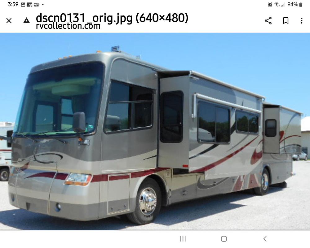 350 HP Cat/7.5Kw onan quiet diesel generator, dual vanity floor plan, freight liner chassis, air ride & air breaks. All metal wrapped awnings, electric patio awnings, window awnings.