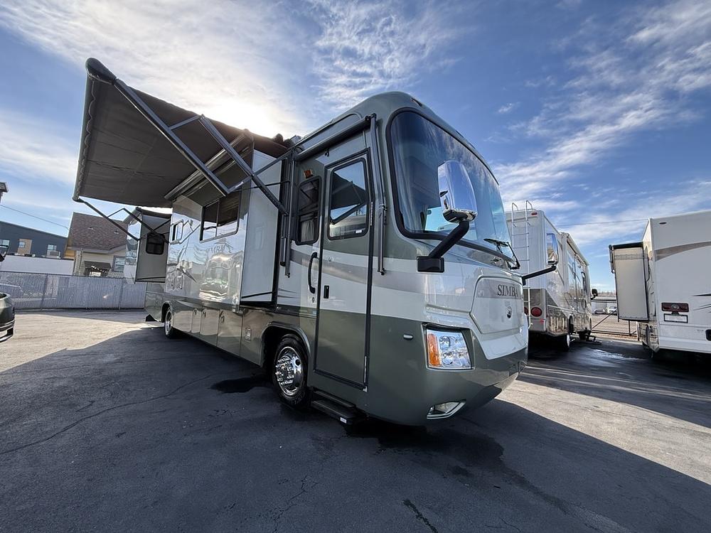 Exceptionally clean and well-maintained 2008 Safari Simba 37PDQ diesel motorhome with only 32,000 original miles. Built by Monaco, this coach offers quality construction, a refined ride, and a spacious four-slide floorplan.