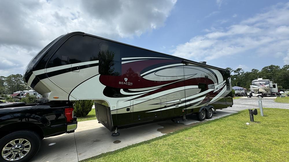 This VanLeigh Beacon delivers true residential comfort in a well-maintained, thoughtfully upgraded fifth wheel. Designed for extended stays or full-time living, it combines high-end amenities with effortless setup, making every trip relaxing from the moment you arrive.