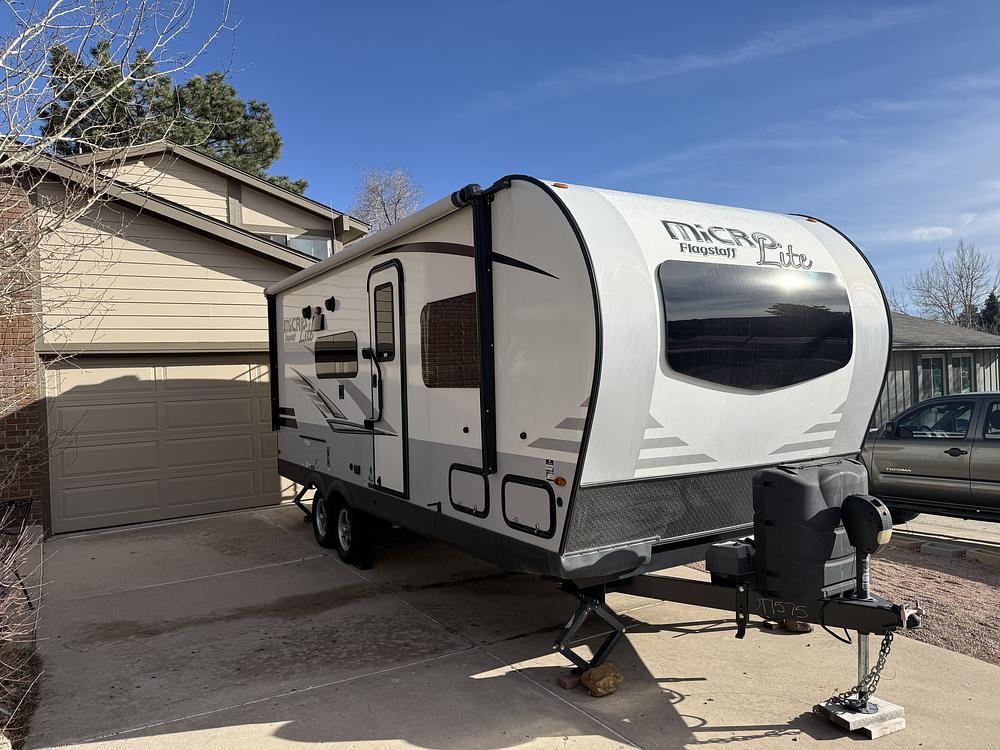 We are selling our Never Been Used 2021 Forest River Flagstaff Micro Lite travel trailer. It has been parked in our driveway since it was purchased and we have opened the awning and slide out multiple times each year to ventilate the spaces and make sure no water leaks and make sure seals were good. We are also including the anti-swap tow bar we purchased to give you a better tow experience.