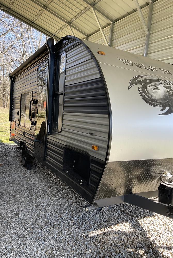 One owner, bought new in 2022. Very light use, well maintained & parked under cover. New tires (including spare) 11/2024 - it hasnt left the driveway since. Built a base with storage & upgraded the mattress but still have the couch but not the original folding mattress. A curtain is being used in place of the bathroom door but still have the door too. Also added some shelving in some of the cabinets. Power awning, Bluetooth radio, wireless backup camera, exterior lights work with the One Control app. Will let the trailer go stocked with supplies. Also have a weight distribution hitch, sway control. Everything works as should, small/light couples camper, that tows well with a 1/2T, 21-10 long, 3272# dry weight, 2 inch ball. Sleeps 3.