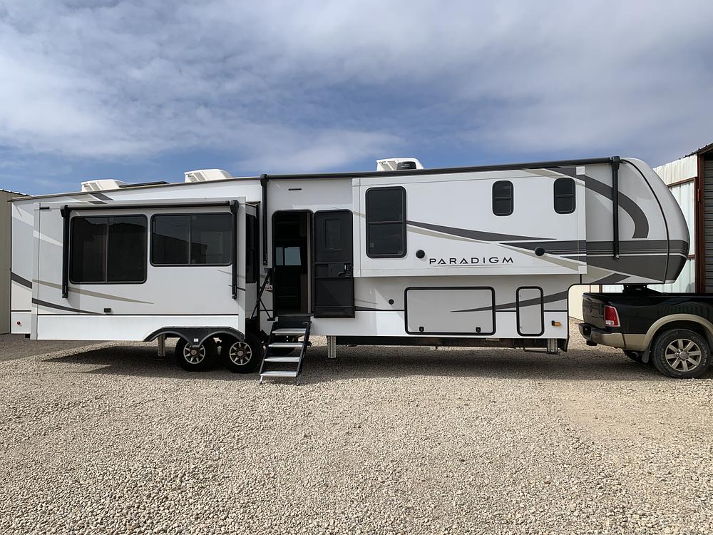 Never-slept-in, all equipment and appliances never used, transported 1200 miles after original purchase, then winterized and stored under roof cover - this 5th wheel is in new condition! Bonus equipment dealer-installed & included: 3-way back up camera system with 7" screen and 6.5 HGJAB-904M Cummins Onan onboard propane generator - $12,000 value! See attached photo for list of all other manufacturer and dealer original equipment package descriptions. Brand new batteries. A 2026 version of this RV with accessories would cost $150K.