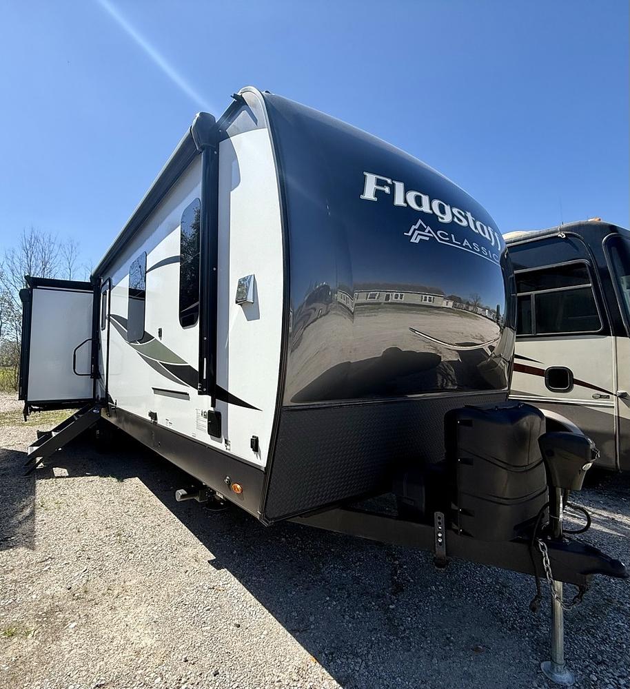 Introducing the 2023 FOREST RIVER FLAGSTAFF 832RKSB, a pinnacle of modern luxury and innovation, masterfully designed for those who dare to explore with flair. Built to be the ultimate companion for adventurers and leisure seekers alike, this travel trailer elegantly balances style, functionality, and comfort. Step inside and be greeted by a contemporary interior that mirrors the tranquility of nature with its earthy tones and modern fixtures. The flagship model, the 832RKSB, features an exquisite layout, offering ample space for relaxation and socializing with family or friends, making it an ideal choice for your road trips and weekend getaways.