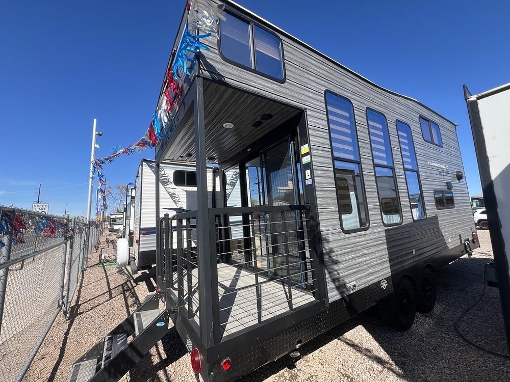 The 2024 Cherokee Timberwolf 16ML is a 27 foot mini loft destination trailer designed like a tiny home, It features a rear patio deck with sliding glass doors. It has Dual lofts for extra sleeping/storage space, and a luxurious kitchen design. This Destination trailer gives you all the luxuries of home on the road.