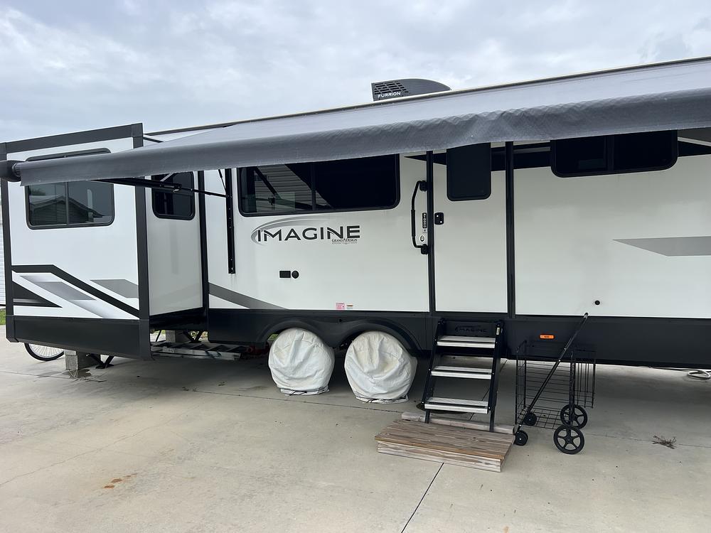 Two slide outs and a retractable awning for shade. Two recliners, two pull out beds, lots of storage space!Only used for about 6 months. High end travel trailer currently in Naples, FL