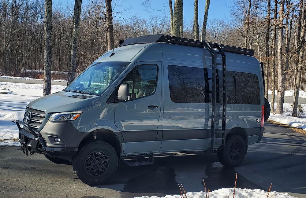 Flatline Van Company rear tire carrier with ladder