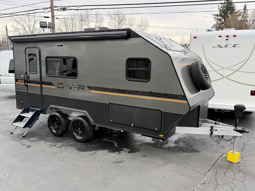 For sale: 2025 inTech RV O-V-R Expedition – premium off-road travel trailer with factory solar + lithium setup. Built with a fully welded aluminum cage frame and designed for serious adventure, this trailer is lightweight, rugged, and ready for boondocking.