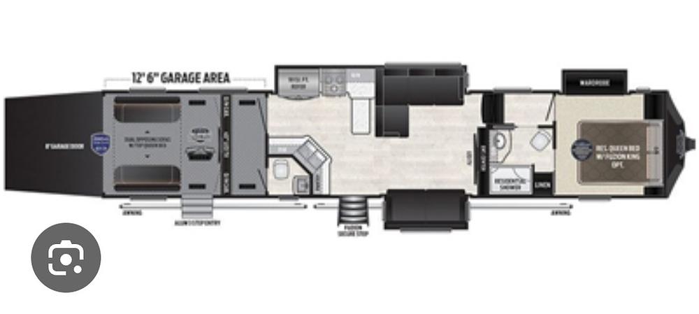 This is a beautiful, very comfortable rv. Only selling because we feel at our age this is a huge rig to pull and park. Hooked to our big truck 63' total length. It has been meticulously maintained. New slide topper over the larger slide. Middle AC replaced. New love seat (replaced L-shape couch) New tires last year not many miles on them. Comes with tire covers and 2 larger ground rugs. Residental Queen master, 2 beds in back that fit residential queen mattress, 1 full bath, 1 half bath, patio and 13' garage that has 3000 lb capacity!The 2019 Keystone Fuzion 429 is a top-of-the-line Toy Hauler designed for those who seek both luxury and functionality in their RV experience. With its sleek design and modern features, this RV is sure to turn heads wherever you go. The Keystone brand is known for its high quality and attention to detail, and the Fuzion 429 is no exception.