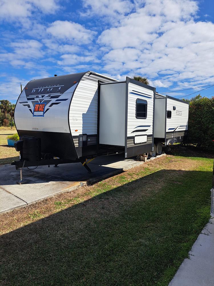 2022 Forest River Puma 31RLQS. 3 slides, kitchen island, Queen bed, 2 TVs, 2 recliners, sofa bed, fireplace, roof AC, stereo, exterior speakers, pantry, lots of storage, big awning, power jacks, rear ladder and spare tire. Located in Florida since November 2024 so never been in a hurricane. Excellent condition. $25,000. CALL 540-230-5561