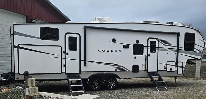 Outside, the Cougar Half-Ton offers a spacious awning for enjoying the great outdoors in comfort, as well as plenty of storage compartments for all your gear and equipment. With its sturdy construction and reliable engineering, this fifth wheel trailer is built to withstand the rigors of the road while providing a comfortable and luxurious camping experience.