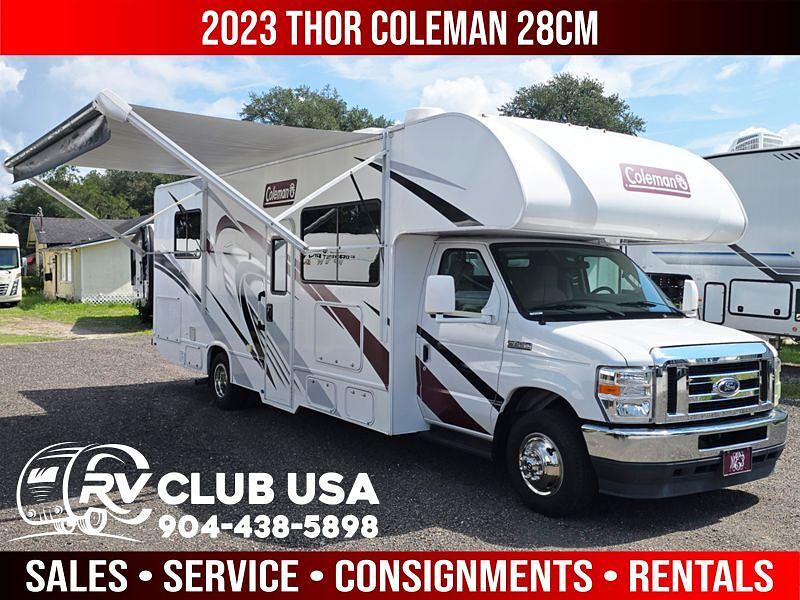 Step into the world of exploration and comfort with the 2023 Thor Motor Coach Coleman 28CM, a marvel of modern recreational vehicle design tailored for adventure seekers and comfort lovers alike. As you gear up for new roads and endless horizons, this motorhome promises a homey feel while staying miles away from home. Sporting a sleek yet robust construction, the Coleman 28CM is designed to handle both highways and byways with the utmost ease. Its exterior is adorned with eye-catching graphics that enhance its on-road presence, ensuring you're always traveling in style.