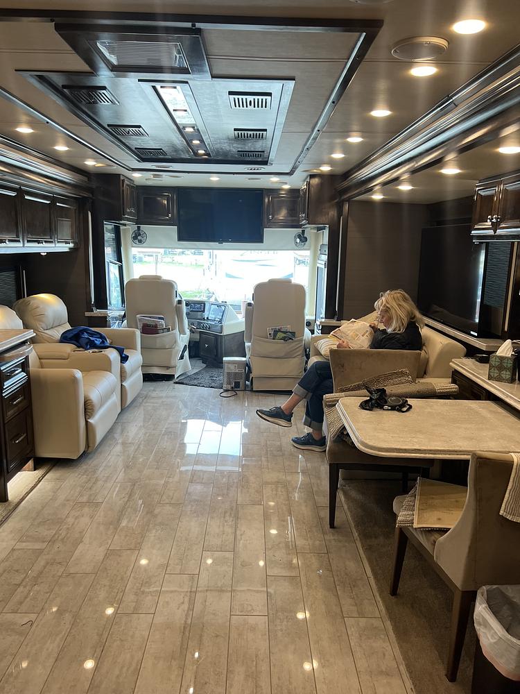 Driving the Phaeton is a pleasure thanks to its large Diesal, Cummins, engine with an Allison Transmission and Air brakes. The 40 IH is equipped with all the modern conveniences you would expect from a luxury motorhome, including 3 TVs, (one is raises and lowers), plus one exterior TV. It incllude and entertainment system with climate control, and plenty of storage space.