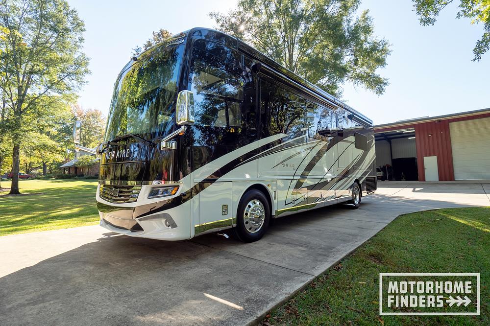 2021 Newmar New Aire 3541 – Compact Luxury Without CompromiseThis 2021 Newmar New Aire 3541 blends big-coach luxury into a 35-foot package. Built on the Spartan 450HP chassis with Comfort Drive steering, it delivers quiet power, precise handling, and a relaxed drive. Impeccably cared for, stored indoors, and ceramic coated for lasting protection, this all-electric coach shows true pride of ownership.