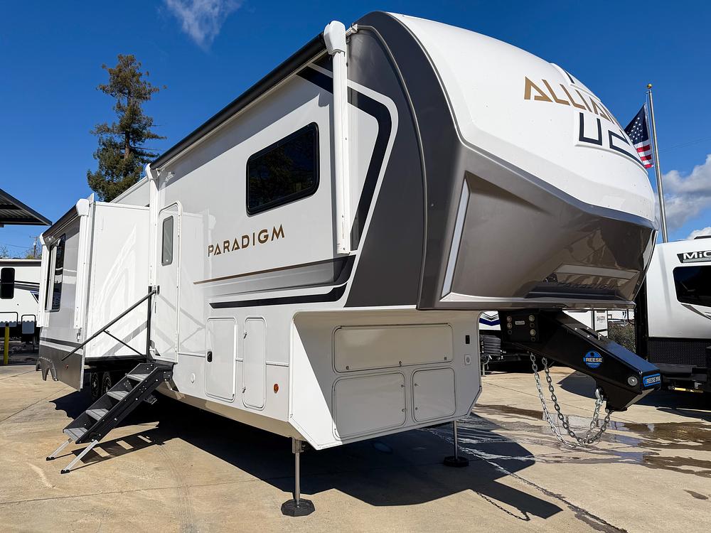 WOW - 2025 ALLIANCE PARADIGM 395DS 2 BEDROOM 2 BATH FIFTH WHEEL - LIKE NEW - ONE OWNER - INDOOR STORED! REESE 20K GOOSENECK UPGRADED PIN BOX, 6 POINT AUTO LEVELERS, SOLAR, 12V FRIDGE, DUAL AWNINGS AND 98 GALLONS OF FRESH WATER. STEP INSIDE TO AN OPEN CONCEPT LIVING AND KITCHEN BUT WITH 2 BEDROOMS AND 2 BATHS. ALLIANCE IS A HIGH END COACH WITH REAL WOOD PAINTED CABINETS, OVERSIZED WINDOWS, SOLID COUNTERS AND TONS MORE. ONLY $94,995 FINANCING AVAILABLE AND TRADE INS WELCOME. 916-747-1936