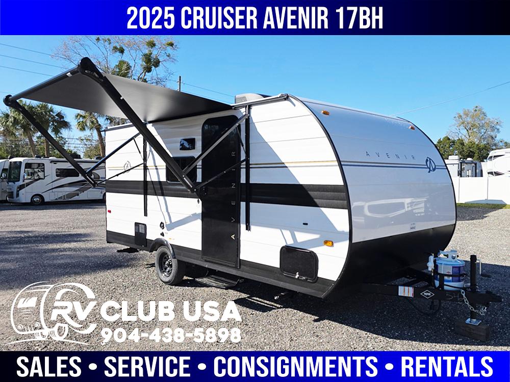 Discover the ultimate getaway experience with the 2025 Cruiser RV Corp Avenir 17BH. This sleek travel trailer model is meticulously crafted to cater to the adventurous spirit without compromising on comfort or style. Designed with modern explorers in mind, the A-17BH is your ticket to seamless travel and unparalleled leisure, making it perfect for family vacations, romantic retreats, or solo escapes into nature.