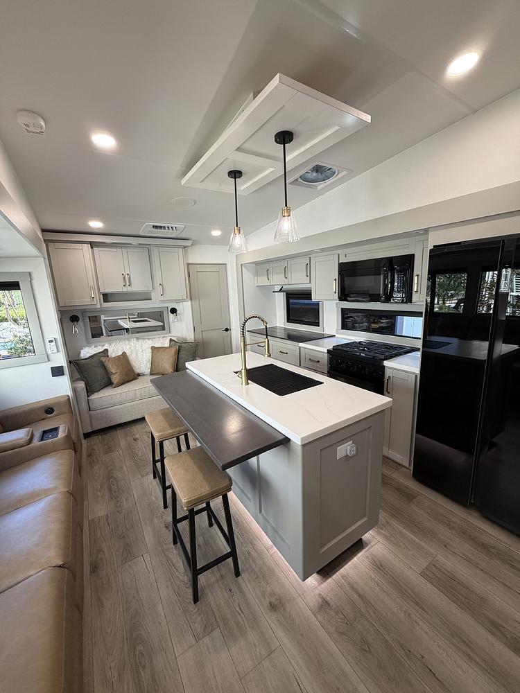 Original owner coach used fewer than 10 trips with under 3,000 miles. Stored and maintained at a very high level and it still looks brand new inside and out. Includes GenY gooseneck hitch upgrade and Hughes 50-amp Autoformer voltage regulator and surge protector.