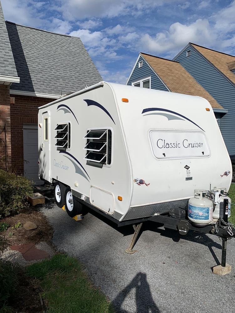 Fully operational with nothing needed for this 2008 18ft. Classic Cruiser except a new awning. New Queen bed, microwave, plumbing, water pump and comes with everything needed to set up. Propane heat, electric and propane operated refrigerator, Ac is super cold, indoor and outdoor shower! Everything has been upgraded including roof, plumbing, tires, brakes, electronic braking system and maximum sway controller and electric jack, Voltage regulator. New hoses, electrical hookup, water filtration and much more. I hate to sell it! New leveling block sets for off grid camping. Built to look like the original Classic!