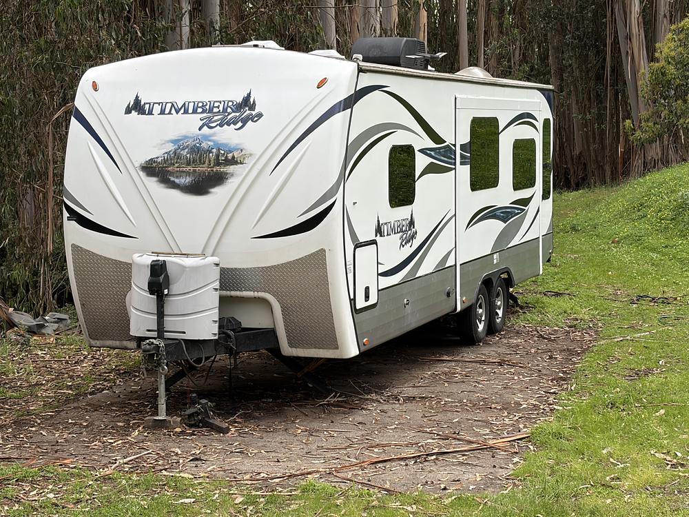 Outdoors Timber Ridge 26RLS travel trailer, very good condition. We bought this trailer new in 2015. It has been kept covered 6 months of the year in the mild central coast area of California. It is a 4 seasons trailer with an enclosed underbelly. It has remote controlled power slide out, stabilizers, awning and lights.
