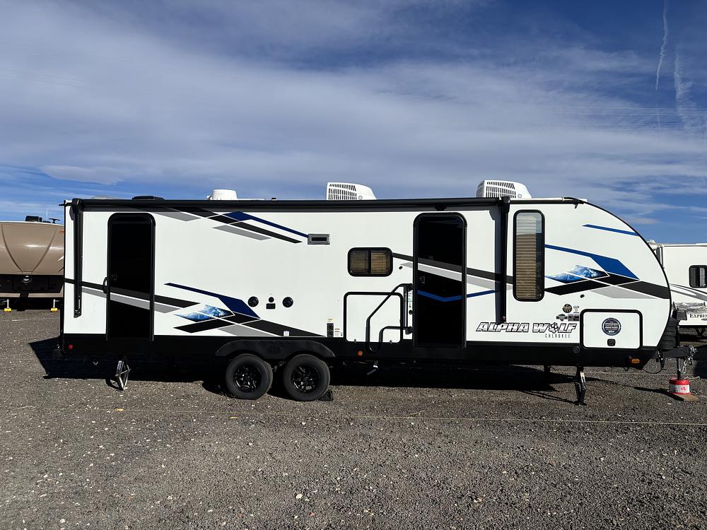 2024 Forest River Cherokee Alpha Wolf 26DBHL, CHEROKEE ALPHA WOLF Limited and Weather Guard Packages |Awning|LED Outside Lighting Package|Alpha Step Above Entry Step|Large Folding Entry Assist Handle|Leash Latch Pet Safety Technology|Friction Hinge Safety Slam Entry Door|Clean Sweep No Vent Floor|LED Lighting Package|LED Blue Ambient Accent Lighting|Zebra Shades|Deluxe Furniture Package Dining |Oversized Pantry|Seamless Countertops|Farm Style Sink Flush Cover|Spring Spout Pull Out Faucet|Blackout Appliance Appearance Package|12v 11cf Refrigerator VibrationSmart|Refrigerator Travel Lock|Backlit Range|Range Glass Cover|Movable Butcher Block Backsplash Electronics |Smart Bluetooth Monitor Panel|OneControl Smart RV Technology|Dual Port USB Stations Multiple Locations|Dual Zone Bluetooth Stereo USB MP3|Outdoor TV Prep Sleeping |Deluxe Bedding Package|Individual Reading Lights|Bedroom TV Prep|Full Underbed Storage with Struts|Pleated Bedroom Shades|Bedroom USB Ports Bathroom |Oversized Vanity Sink|Alpha Bath Fixtures|Bathroom Motion Lighting|Tub Surround|Bathroom Skylight|EZ Clean Porcelain Toilet Spray|Oversized Multi Speed Bath Fan Mechanicals |Juice Pack 50w Solar Panel|Side Solar Prep|Two 20# LP Bottles andLP Bottle Cover|LP Grill Quick Connect|30-Amp Marine Style Service Cord|15k AC Ducted Quick Cool Dump Feature|Quick Clean Waste Tank Sprayer|Outdoor Shower Hot Cold Water Coach Build |Aluminum Wheels|Fully Walkable Roof Deck|Seamless Reflectivity Roof Membrane|Fiberglass Front Cap LED Light Strips|Armoured Underbelly Enclosure|Forced Air Heat to Holding Tanks|Arctic Insulation|Power Tongue Jack with Light|Unobstructed Pass Through|Pass Through Storage Motion Lights|Slam Latch Magnet Compartment Doors-