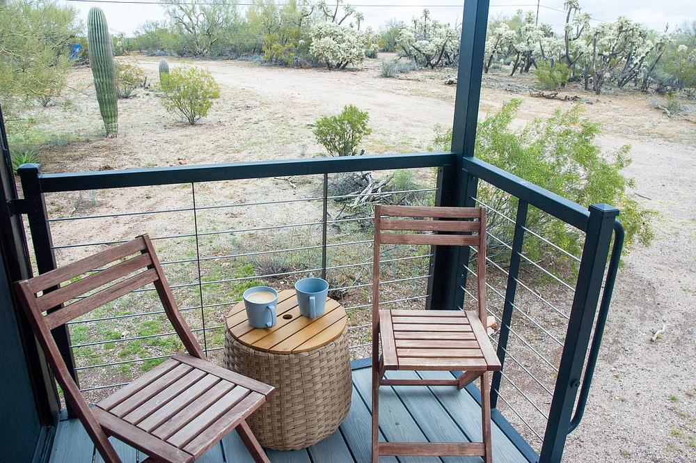 This lightly used Keystone LOF24 is a dual loft, no-slide destination trailer, with reclining seats, a pull out table, electric fireplace and covered deck. Lots of windows let in the light and a huge side awning when you'd prefer shade. The kitchen has a large fridge, 3 burner propane stove and oven, deep sink and enough cabinets to hold everything you need. The tiny-house like format makes it comfortable for a weekend or a more long-term stay. The AC stands up to Arizona summer heat and is prepped for solar, a second fan and washer connection if desired.