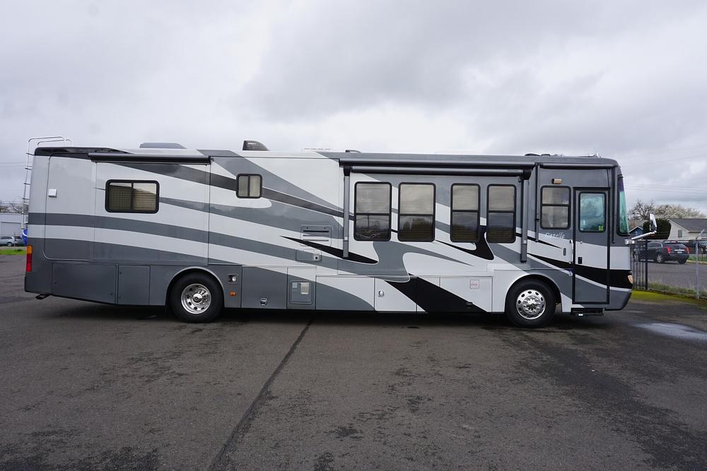 2005-40’ Safari Gazelle - PAQ Quad Slide Floorplan, C9 Cat 400HP, 6 Speed Allison, 84,736 miles, Custom Roadmaster Chassis, Side Mounted Radiator, 10,000lbs Hitch, Queen Bed, Cherry Hardwood cabinetry, Two Owner coach that has been garaged since new, Onan 8kw QD Gen, Super Clean coach that is in Amazing condition, pride of ownership extremely high. $84,999.00