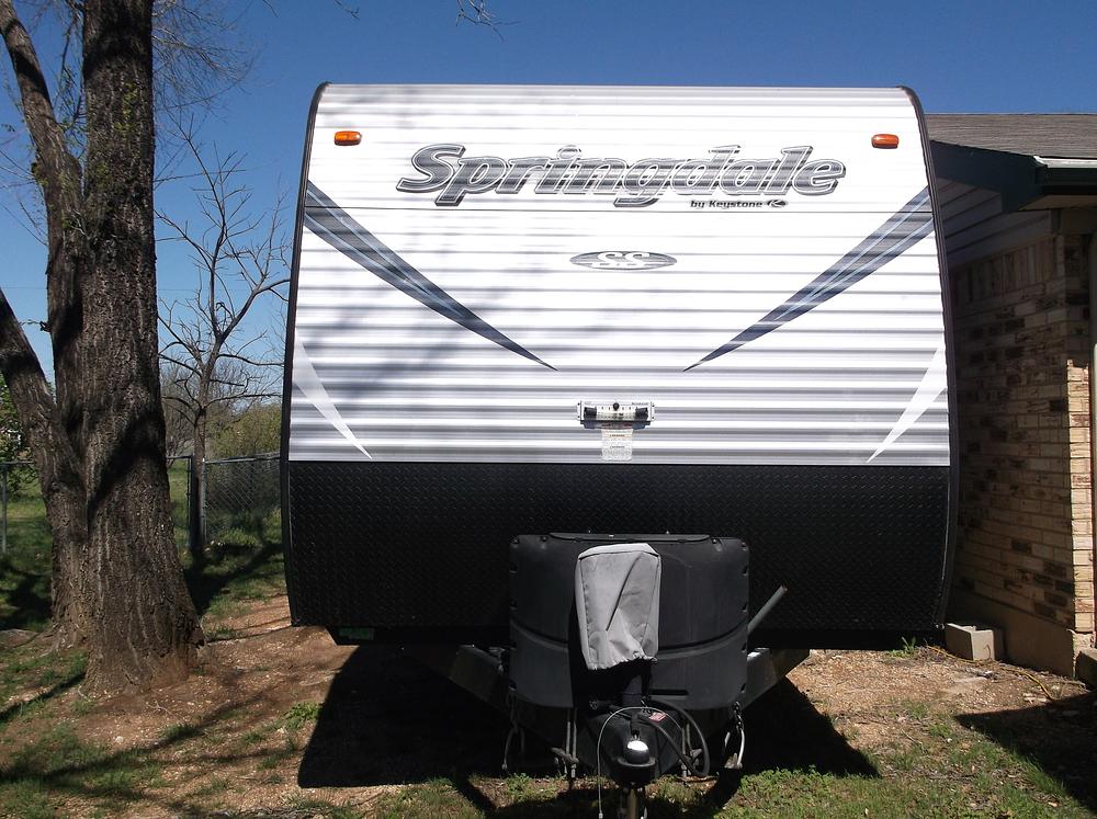 The Keystone Springdale Summerland is a 2018 Travel Trailer with 15000 miles on it. Known for its durability and comfort, this model is considered one of the best in its class. With a spacious interior layout and modern amenities, it provides a perfect home away from home for travelers looking to explore the great outdoors. The exterior features a sleek design with vibrant colors and eye-catching details, making it stand out on the road. The interior is thoughtfully designed with high-quality materials and finishes, creating a cozy and welcoming atmosphere. The Keystone Springdale Summerland is equipped with all the necessary features for a comfortable camping experience, including a fully functional kitchen, a bathroom with shower, and plenty of storage space. Whether you're planning a weekend getaway or a cross-country road trip, this travel trailer has everything you need to make your journey memorable. Don't miss out on the opportunity to own a Keystone Springdale Summerland and start your next adventure today. Experience the freedom and convenience of traveling with your own space on wheels. This model is reliable, versatile, and ready to take you wherever your heart desires. Get behind the wheel and discover the wonders of the open road with the Keystone Springdale Summerland by your side. 4 new tires, slide-out topper, 3 big solar screens, 32 in smart tv and dvd player, replaced sofa and recliners with newer, blowout damage on rear skirt, reese dual cam sway control, spring bars and hitch, sewer hoses and water hose, electric adapters, helping hand, newer short queen memory foam mattress and bedding, newer propane bottles, regulator and hoses, newer tongue jack