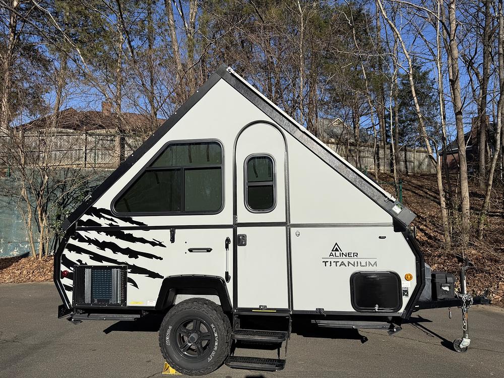 The Aliner Titanium is the tough kid on the block. Featuring 15" wheels, a 3 inch lift, and protective black diamond plate, the Titanium is boldly built to handle rugged terrain with style. Plenty of storage, a soft place to get your sleep after a hard day of playno matter where your adventures take you, youll arrive with the comforts of home.