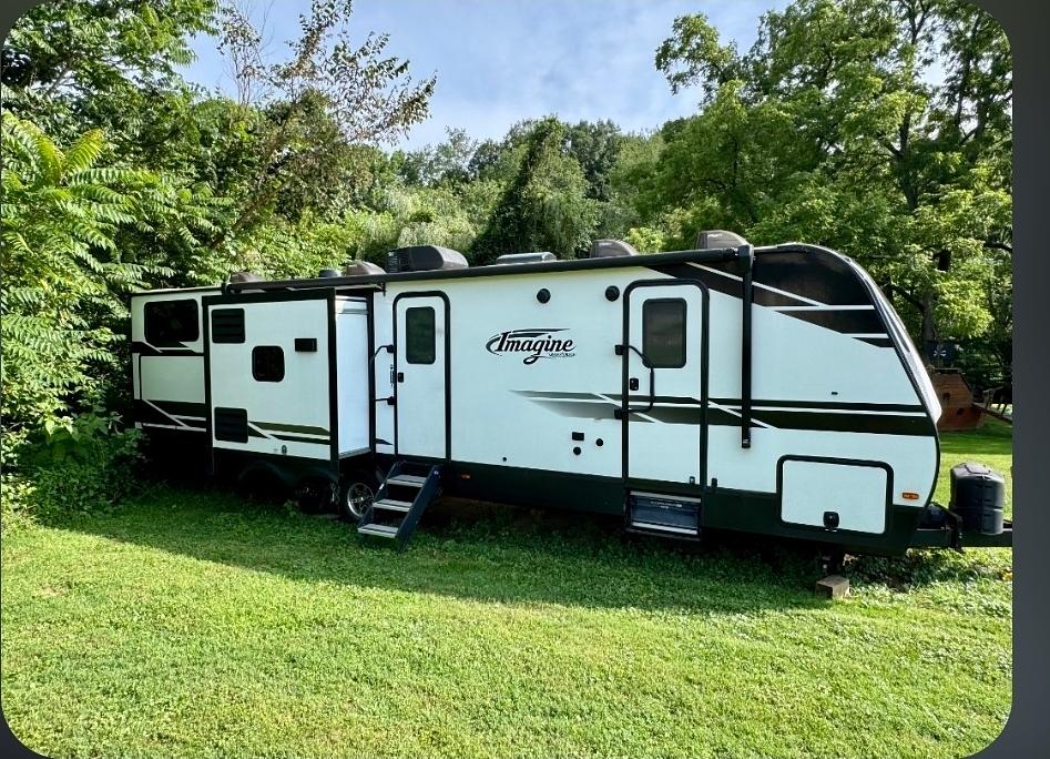 This is a 2021 Grand Design Imagine 3250BH is a 37-foot, family-focused travel trailer with a 3-slide, dual-entry, rear-bunkhouse floor plan that sleeps 8-9 people. Key features include an outdoor kitchen, 50-amp service with dual AC units, a heated/enclosed underbelly, and a, roughly 8500-lb. This camper is a great option for big families or wanting to bring more friends or relatives for camping trips. I have more photos if needed. Please message me with any questions.
