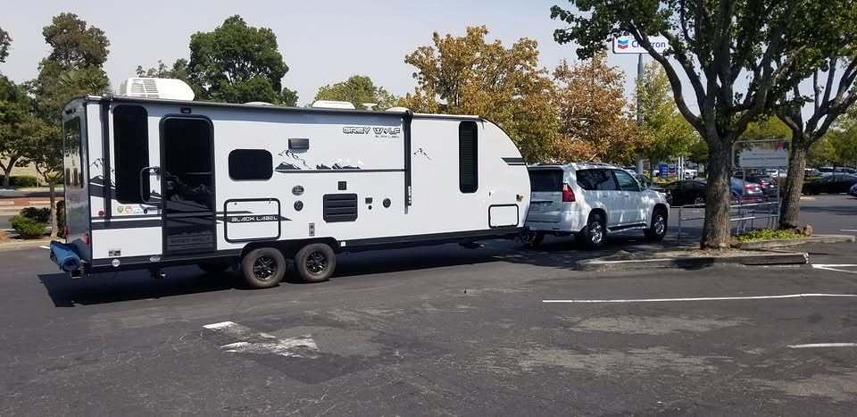 Equipment: 2021 Forrest River, 23MK, Grey Wolf - Black Label, Solar ready, WiFi ready, 3.5KW inverter, dual fuel gen. on tongue rack, all tinted windows, Blue Tooth entertainment center, exterior speakers, 22" led tv, broadcast channels antenna, led Touchstone remote control wall fireplace electric resistance heater, WFCO 8955-PEC conveter safe for lithiun ion charging, propane gas alarm, 13.5 btu roof ac, 16' electric rollout awning w/led lights, zebra blinds, Suburban propane heater, 3 burner stove and oven, 1800w microwave, 7K lbs each corner leveling/stabilization jack's & indicator, Mopeka dual tanks fill guages, multi function monitor panel, Exterior Contour Ice Maker/drink refrigerator, 2 Exterior compartment shower hoses, Dometic refrigerator, seperate freezer combo, dinette slideout. Attachable gas BAR-B-Q, Dry weight 5660 lb. Overall length 28' 10". "EZ-Lift", Sway bar tow kit, L, R, & Rear Furrion wireless backup & security cameras, low miles, original owner, non-smoker.