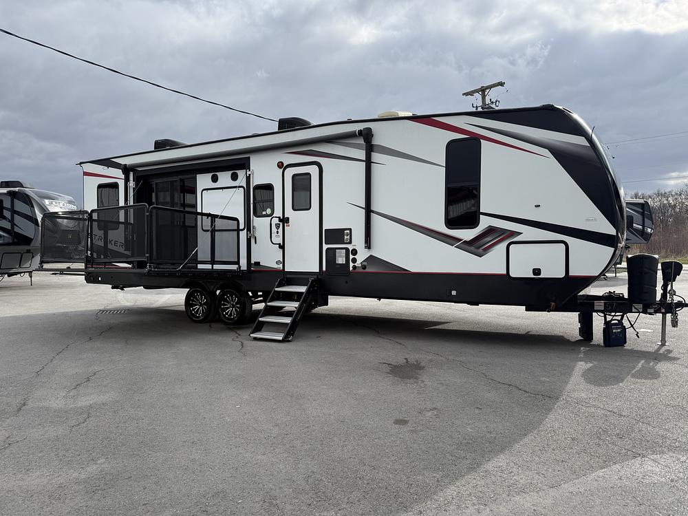 Step inside the Stryker 3212, and you are greeted by an interior that exudes comfort and style. The spacious living area is perfect for family gatherings or entertaining friends, complete with plush seating arrangements that invite you to relax after a day of exploration. The state-of-the-art kitchen is equipped with top-of-the-line appliances, ensuring you can enjoy a home-cooked meal no matter where you are. The ample storage space means you can bring all your essentials along, while the refined finishes and smart design create an environment that feels more like a stylish apartment than a travel trailer.