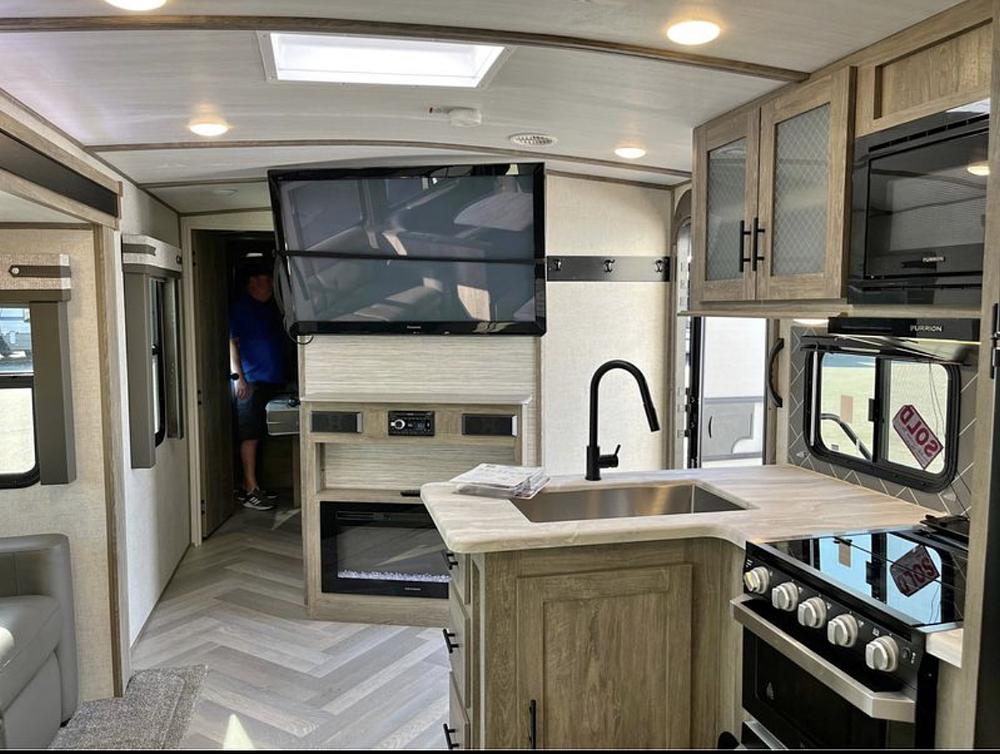 We have power and water hooked up, so all features can be tested. There is also a transferable extended warranty with 2 years remaining. We loved it but kids outgrew it and we upgraded to a 5th wheel toy hauler. Having a full and half bathroom was a game changer. And the half bath has an external door, so no dragging dirt and sand into the main. The external kitchen with griddle, fridge and sink made it easy to do so much outside. Its in excellent condition and has several upgrades.