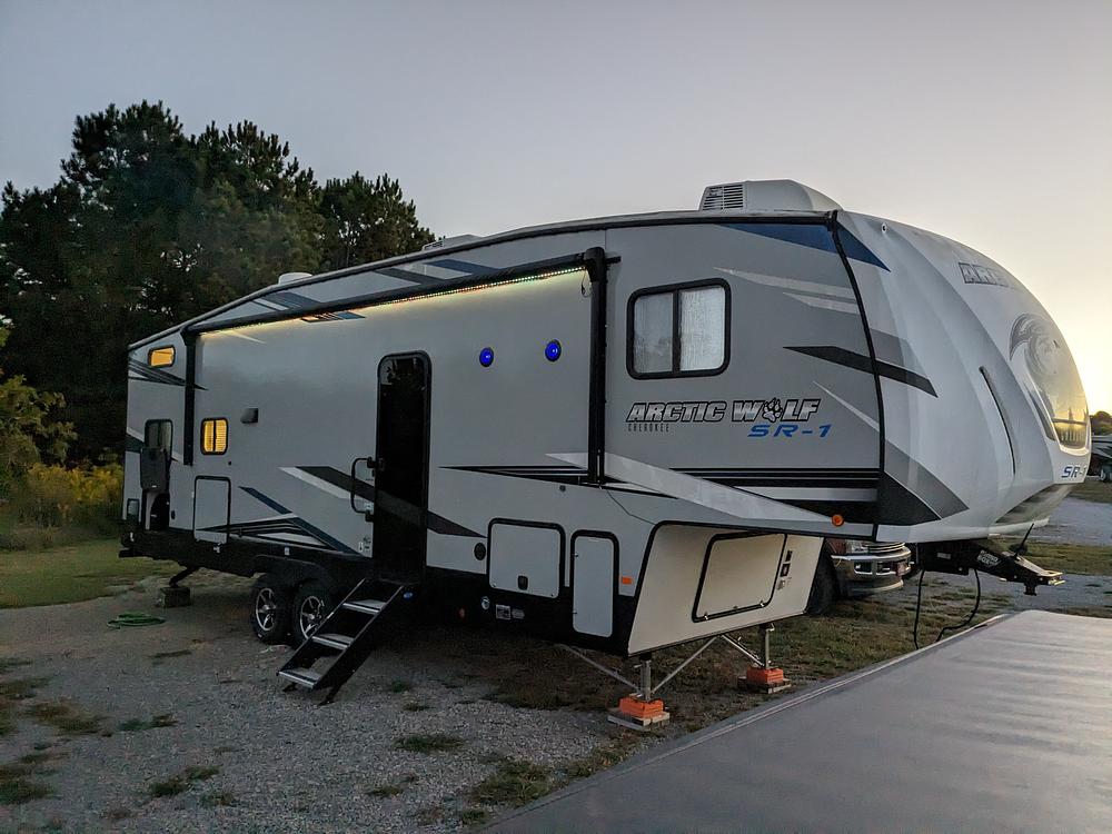 We've loved this 2021 Arctic Wolf 287BH, but our camping needs have changed, so its time for it to find a new family. Its a great, lightweight fifth wheel thats easy to tow but still feels huge inside once youre set up.