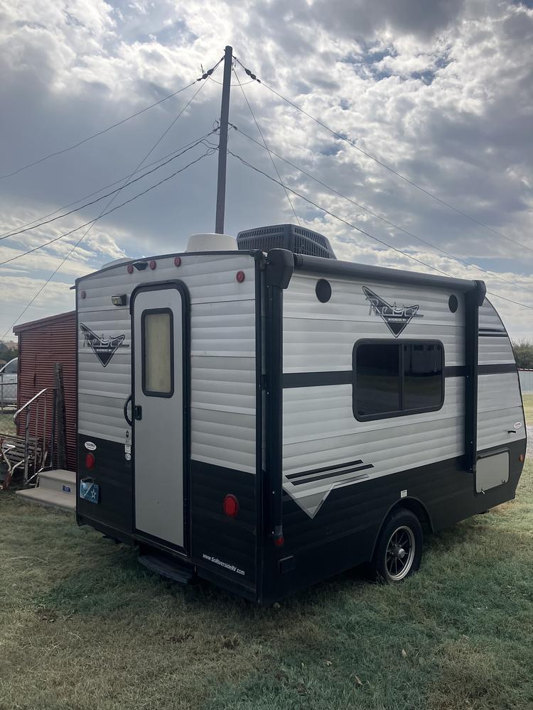 The 2022 Riverside RV retro 135 is a lightweight vintage styled travel trailer roughly 16 foot long and weighing around 2600 pounds making it easily total by a smaller vehicles it features a rear entry a front RV queen bed a bathroom and a shower and a sofa suitable for 2 to 3 people. Kitchen has two burner cooktop microwave and refrigerator. Exterior door 6 foot awning, power tongue jack in alloy wheels systems 13,500 BTUAC 20,000 BTU furnace in roughly 17 to 36 freshwater capacity.