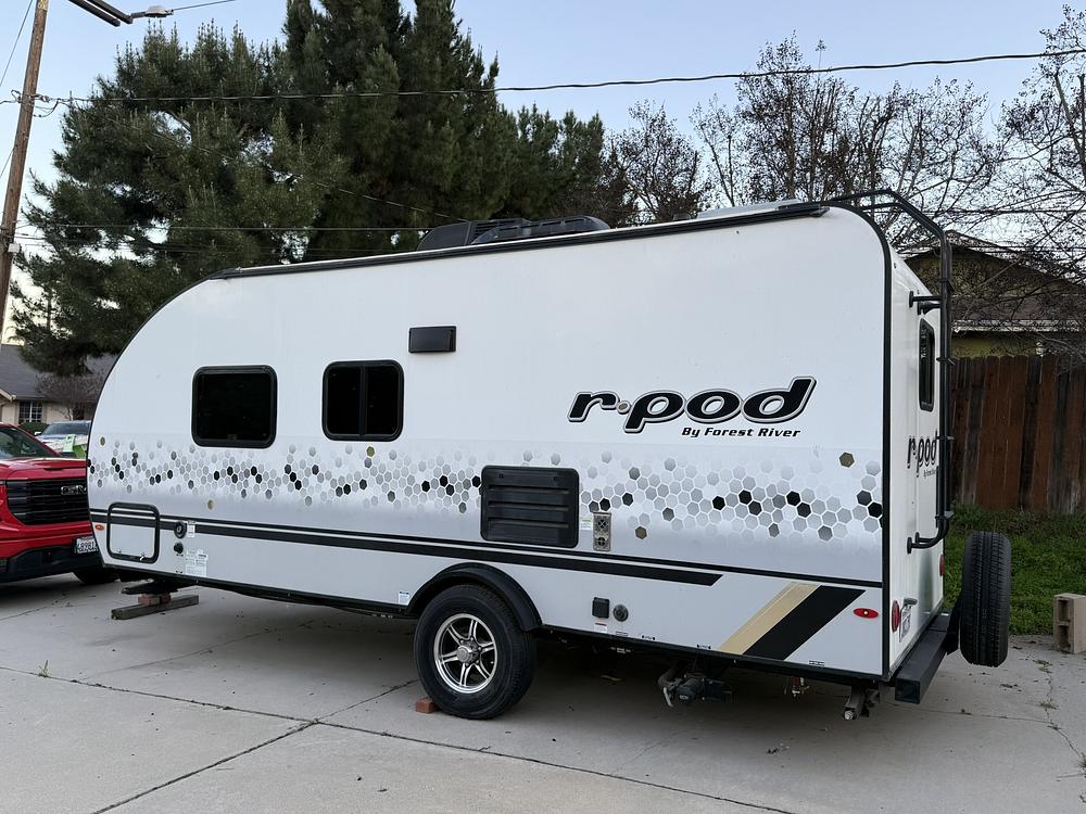 Like new 192 Rpod. Only used 7 times. Air conditioner, heater, microwave, tv, stove top, refrigerator, Murphy bed, no slide out. Easy to tow, electric awning, electric hitch. New bed mattress.