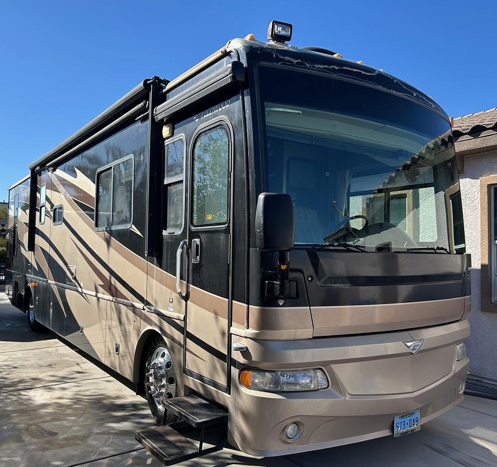 I am the original owner of this RV, it has 58,230 miles on it, upgraded to aluminum wheels, the list of included and optional items is shown in the pictures, cost new $198,716 plus tax and license.