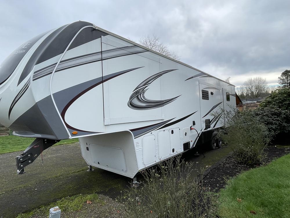 This fifth wheel comes with a variety of features to make your travels more enjoyable, such as an electric awning, outdoor kitchen, and heated underbelly. The Solitude S-Class is also equipped with multiple slide-outs, providing additional living space when parked.