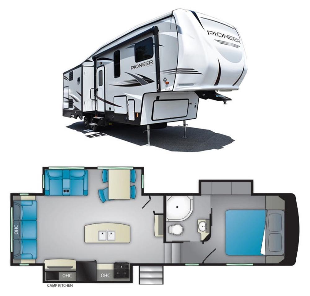 The Heartland Pioneer 290 is a fifth wheel that offers everything you need for a comfortable and enjoyable camping experience. With a 2020 model year, this RV combines luxury and functionality to provide you with the ultimate home on wheels. The Pioneer 290 boasts a spacious interior that is perfect for families or groups of friends looking to hit the road and explore the great outdoors. The stylish design and quality craftsmanship of this vehicle are sure to impress even the most discerning travelers. With plenty of room for sleeping, dining, and relaxing, you'll never feel cramped or crowded in the Pioneer 290. This fifth wheel is equipped with all the modern amenities you could ask for, including a fully-stocked kitchen, comfortable seating areas, and a bathroom with all the comforts of home. Whether you're planning a weekend getaway or a cross-country adventure, the Heartland Pioneer 290 is the perfect companion for your travels. So why wait? Start planning your next journey today with the versatile and dependable Pioneer 290 by Heartland.