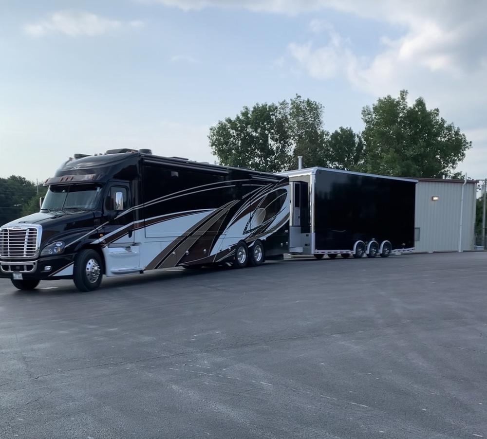2020 Renegade XL X43DB luxury Super C diesel motorhome + fully loaded InTech BSA8528TTA5 Stacker haul trailer the complete, turn-key toy-hauling rig! Located in Springfield, Illinois.