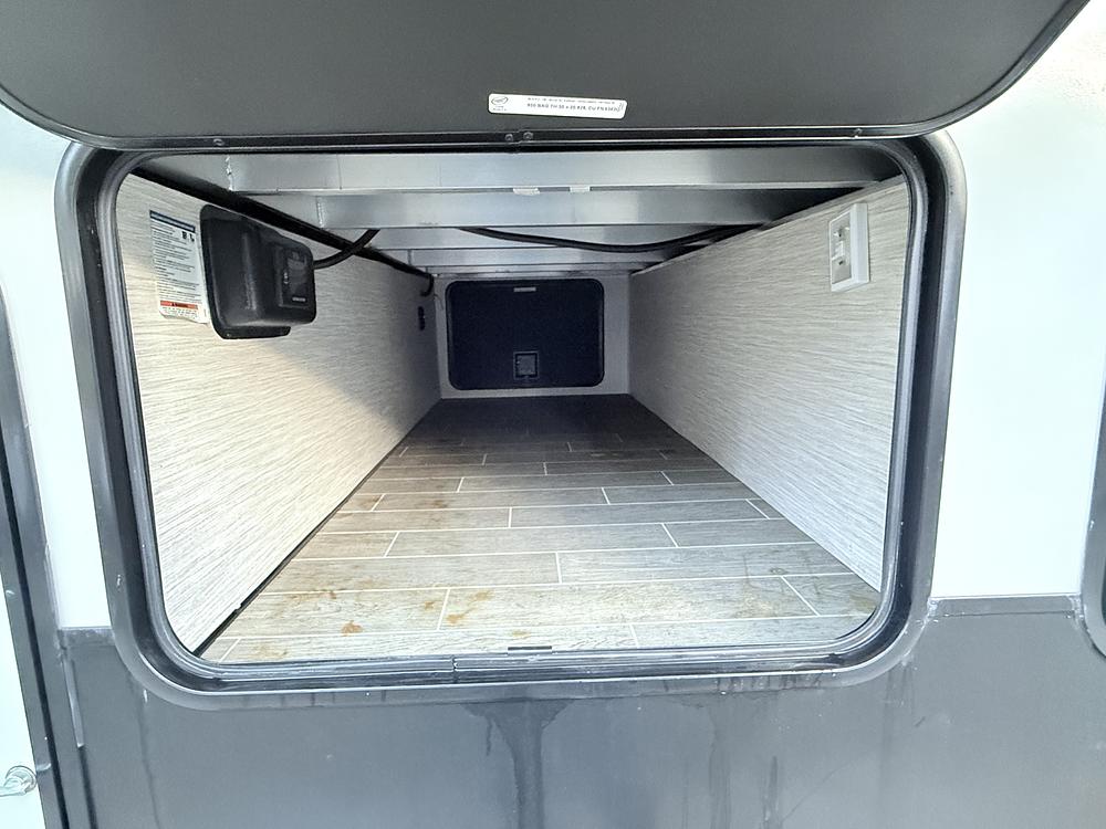 Outside, the Cherokee Arctic Wolf features a large awning, perfect for enjoying the outdoors in any weather. The exterior design is sleek and modern, with plenty of storage space for all your gear. With easy to use hookups and leveling systems, setting up camp is a breeze.